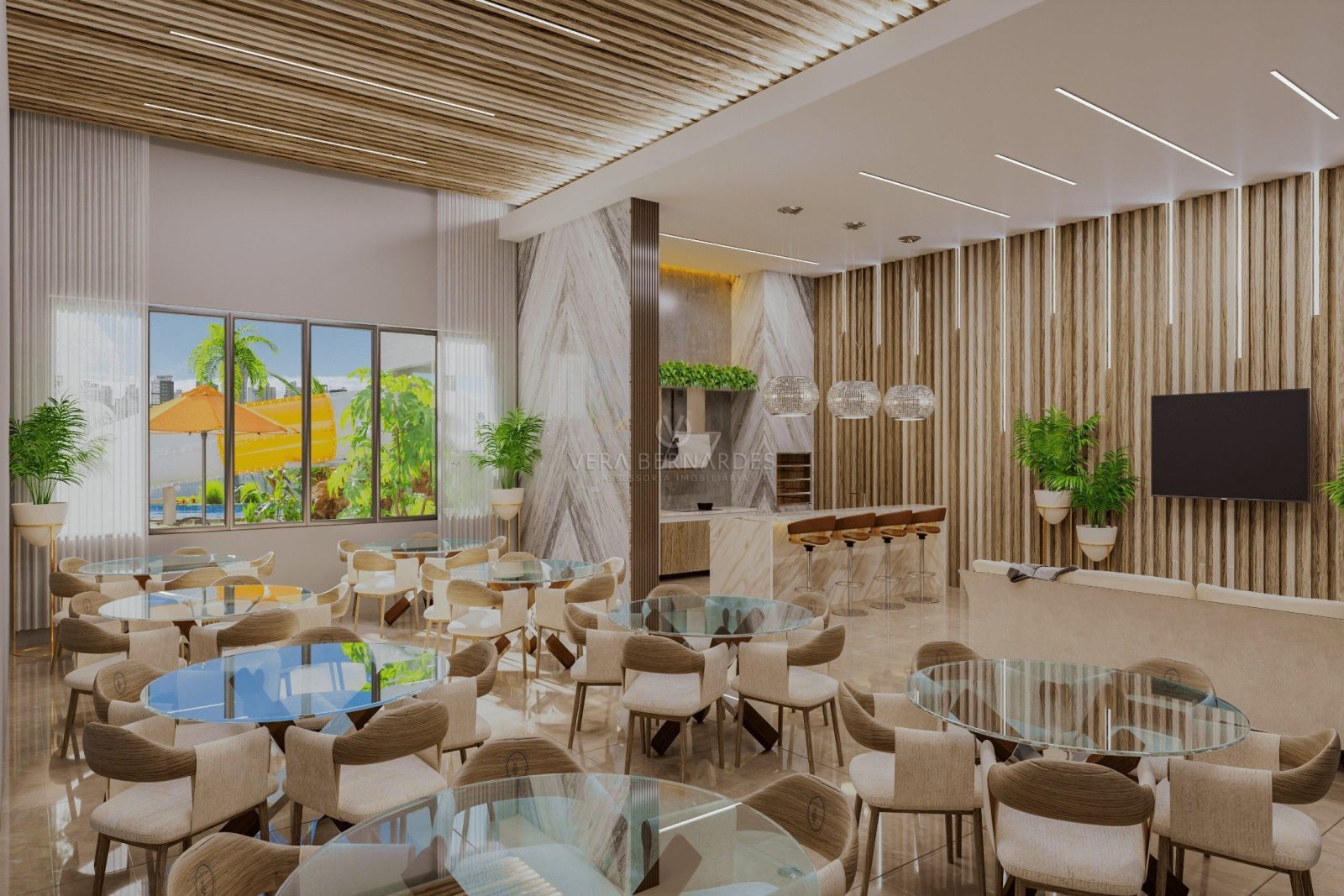 No piso térreo, além de um suntuoso hall de entrada, com 485 m², um belíssimo e confortável Salão de Festas com Boate, para brindar os bons momentos da vida sem interferir no descanso dos demais moradores e duas salas de coworking para trabalhar de bem com a vida, sem sair de casa.